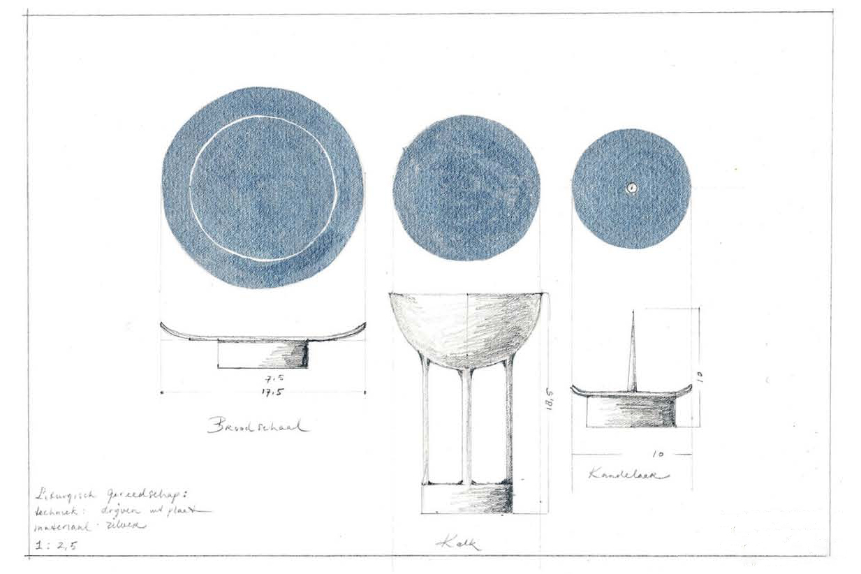 Many people were involved in the realization of this project. Hand craftsmanship was employed wherever possible, to retain the subtle traces of the human touch. Designer and silversmith Pascal de Caluwe was involved in the design and production of the liturgical objects, their cases, and the chapel's furniture. He understands the art of combining traditional methods, personal know-how, and improvisation. It is this intensive interplay of steering and letting go that has made the objects what they are. A special thank you is extended to Sister Hiltruda Steemann SSpS, who with quiet dedication fashioned the white linen altar cloth at the Wahlwiller Cloister in the Netherlands.