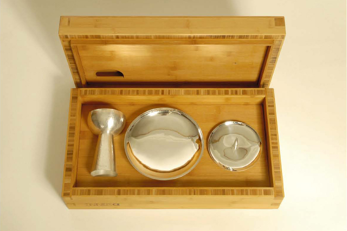 The liturgical objects were designed as part of the total creative process and adhere to the same design principles as the rest of the chapel. Austerity, the natural beauty of the materials used, and the internal structure are all visible in the objects. The functions of the objects and their use in specific religious rituals were integrated into the design. Due to their universal forms, most of the objects can be used in a variety of ceremonies by different religious groups. The circle and dome motifs were chosen to represent the spirit, just as in the larger meditative space. The design of the chapel is so reflected, in miniature, in the objects. It is playing with scale. As Blaise Pascal said, 'Do little things as if they were great...; do great things as if they were little.'